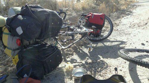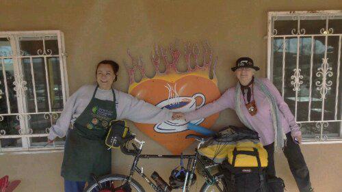 Low on energy from a short night of sleep, I decided to stop at a coffee shop on the way out of Española that Adam had suggested. The owner recommended that I bring my bike up on the patio because "there are a lot of crackheads around here".