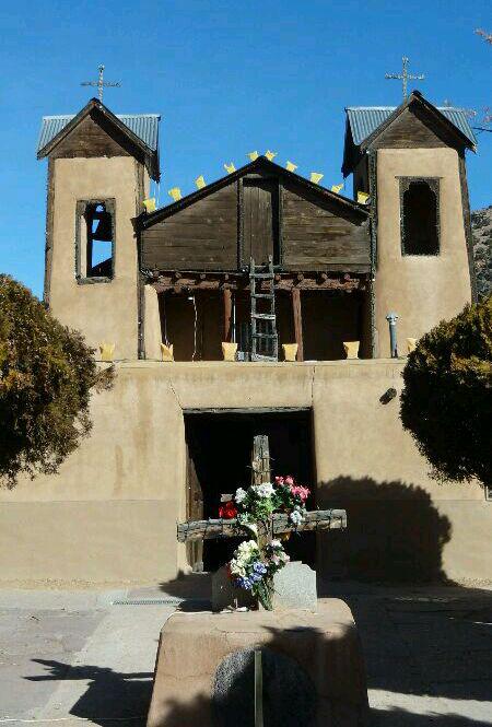 I decided to take the "High Road to Taos", or part of it, to get out of town. There's a church up there that has some extra dirt, they say, and they say that dirt heals people. So I headed up to the santuario de Chimayó, holder of the dirt. It was not a pleasant ride. Right up to just before the santuario, it was more shanties, dogs, and burrs.