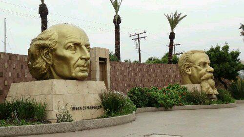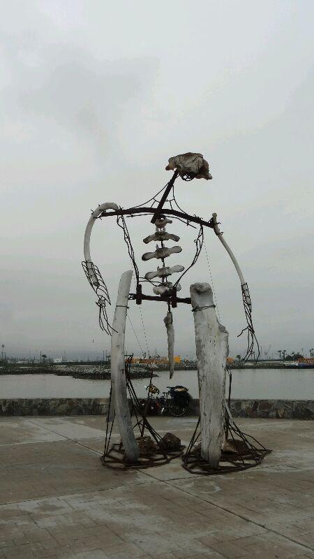 There was a statue of a "whale man", an ambassador from the terrestrial and marine flora and fauna to us humans. He was constructed to make peace with us, but he wasn't prepared for the deserts and died along the way to reach us. That's what the placard said.