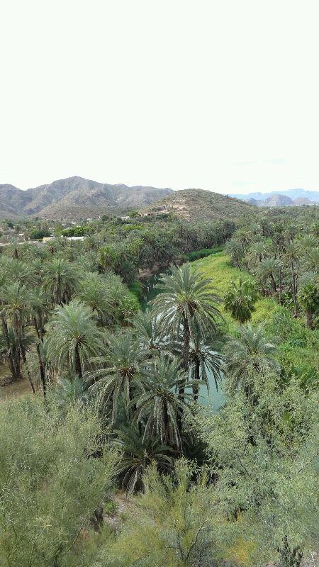 He got to the bank, then we crossed under the highway bridge. We found ourselves in a remarkably beautiful area full of date palms that made me think more of Viet Nam than Mexico. There was a water purifier as well as a small clothing market tucked away down here, and I picked up a towel from the market. We took a steep hill back up to the highway.