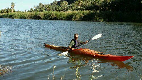 Later in the day I got a chance to try out kayaking. Gary at El Coyote had a kayak, and that got my interest up; when Chris and Lori offered to let me try theirs on the smooth river, I decided to take them up on it.