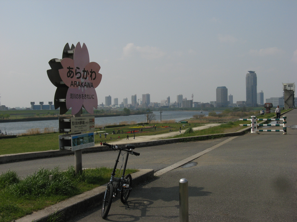 The jewel of Tokyo rivers (for cyclists) is the Arakawa. Though it is punctuated by the futile yet determinedly constant "scooter barriers" you can see to the right in the picture below, it is remarkably long and goes through a number of varied environments.