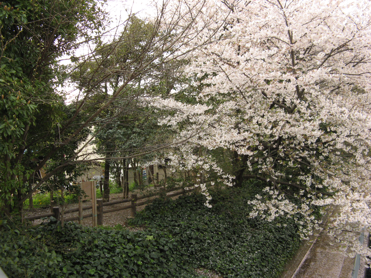 On the way to Mizumoto park there is a random dirt path next to a river, lined with cherry trees and tall--tall some other kind of tree. There are outlets along the path, into places, usually playgrounds or small parks like the one below.