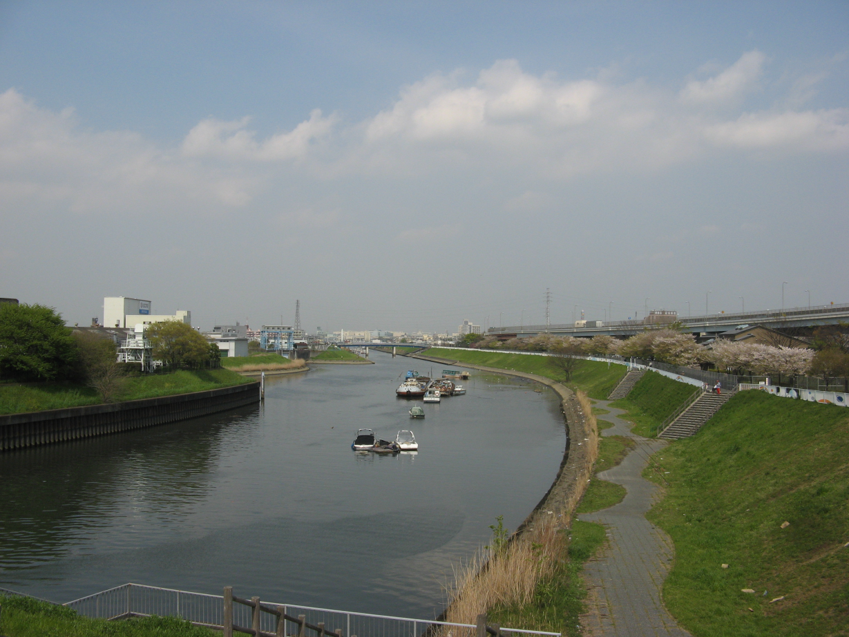 Another bit of scenery along the Arakawa. This is the price we pay--though the bike path is for pedestrians and bicyclists only, it is because the land around the Arakawa is surrounded by industrial plants and warehouses. This occasionally (particularly along the beginning of the Iruma river bike path that connects to the Arakawa) means some disturbingly unsavory smells.