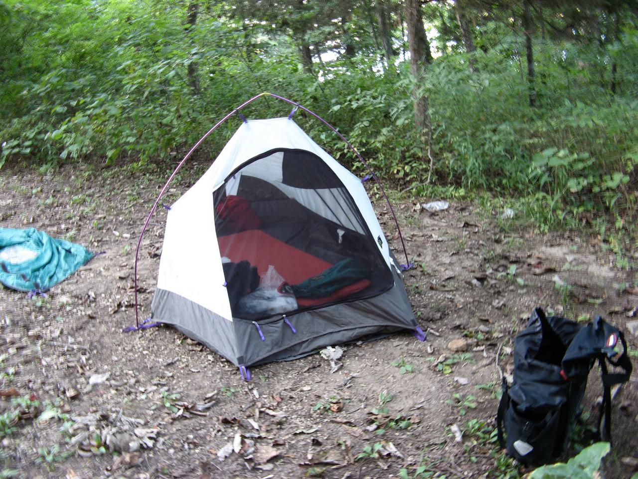 I missed the sunset in my food orgies. It's oddly warm inside my tent even without the rain flap. Once again a half moon, tonight a true half-moon, rose. I noticed it while biking, that hint of white against a clear, blue sky. I'm a bit too tired to enjoy it fully. The tree frogs echo, then harmonize, then echo. I let into my tent little bugs that look like white fairies. They don't care that they look like fairies, of course, but I think they are better than mosquitoes. I'm looking forward now to sleep, a late morning, and an easy day tomorrow (please!).
