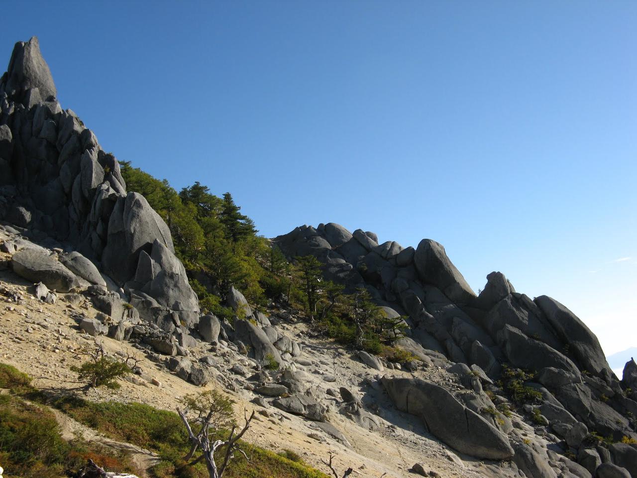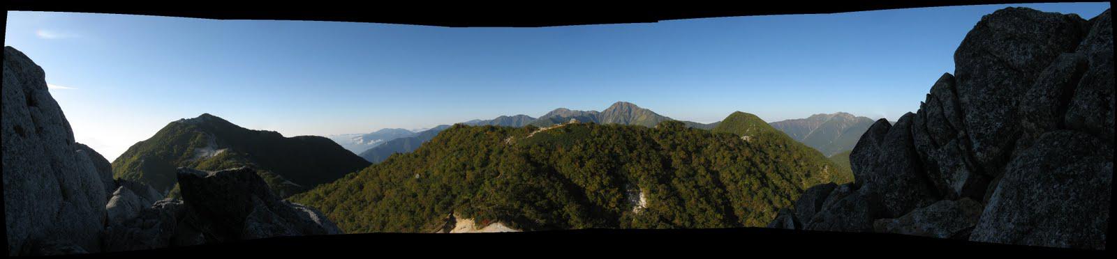 My second day in the Southern Alps started with a climb back to Jizo-ga-take. This time I meant to actually get to its peak, or, really, as close as I could get to the peak. You can't reach the very top without a rope, but I got a bit of climbing practice in anyway, edging up the rocks that surround the main spires of the peak. This was again very pleasant, and I spent well over a half an hour sitting and taking pictures from Jizo's high vantage.