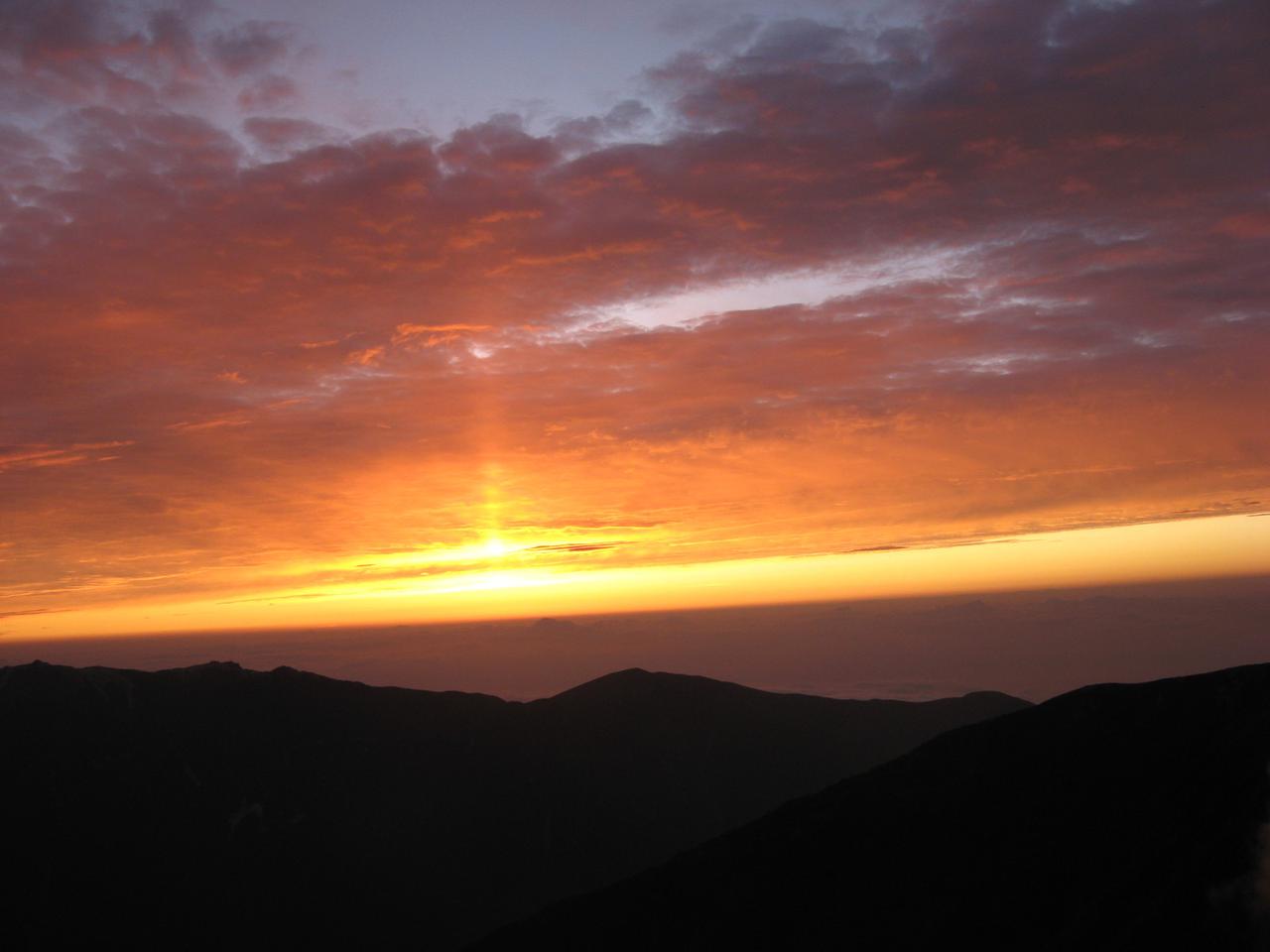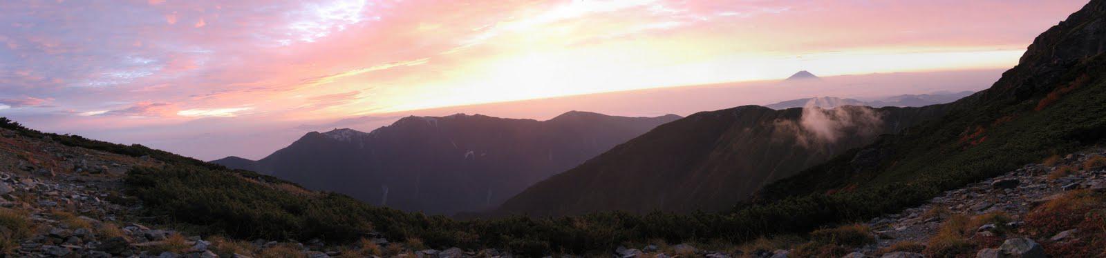 The sunrise was spectacular. Though there was a bit of cloud cover and I couldn't see some of the smaller mountains, at my vantage point I was able to see through a clear space to Mount Fuji. I felt a bit like I was on Venus; I was certainly a long way from home. I took a few pictures, then lay in my tent again until the winds knocked the tent down.