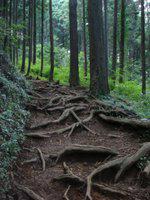 I made a bad choice after that, to try to get to a different site nearer a train station (if the other campsite I mentioned was full I would have been screwed because there was no train or bus nearby). This involved me going down a path in the dark, by myself, with nothing but my bike light. I was afraid to use the bike light on full-time beam because I was worried the batteries might die and then I'd really be screwed, so I put it on flash instead. This saves battery by flashing on and off, but it can be disorienting. In the pitch dark, worried that there might be some wild animal ready to attack, the effect of that flashing light was like being in a horror movie. Every time a leaf hung over into the path of the flash, the shadow it cast looked like a small, black animal heading towards me--an animal unafraid of me and thus dangerous. After about a half hour of trying to use my keys as a bell to scare off any predator that might attack me if surprised along the path in the dark, I hit upon the idea of using my cell phone speaker to play some music that might scare them off. The only mp3's I had on it at the time were a voice recording of In Cold Blood, by Truman Capote, something I didn't think would interest scary forest animals very much, so I tried the various ring tones on the cell phone instead. The first ring-tone sounded like the soundtrack to a horror movie, so I quickly changed it. The next song was a bit more soothing; I walked along and, after a while, I calmed a bit and became absorbed in getting back to the station—of course by this time I'd given up camping and just wanted to go home. It was difficult judging my path (remember, I'm going down a mountain) with the small, flashing light, and I fell down at least four times, nearly sprained my ankle, and ripped a hole in the knee of my pants, where I still have a nice purple bruise. I promised several times on the trail not to take nature so lightly.
