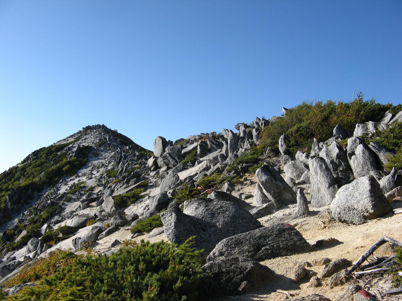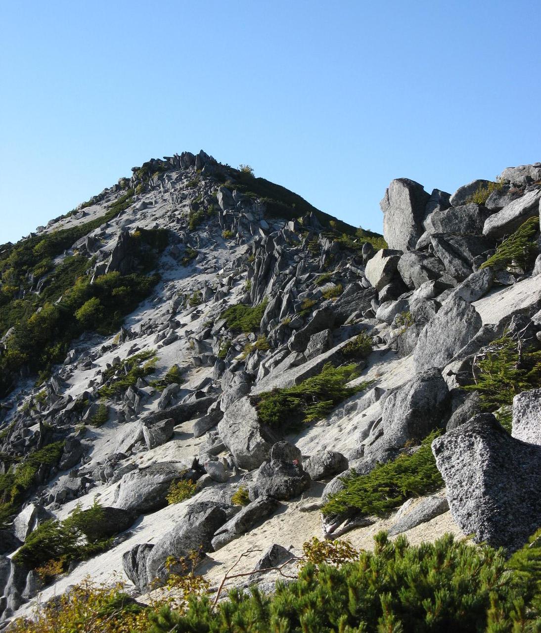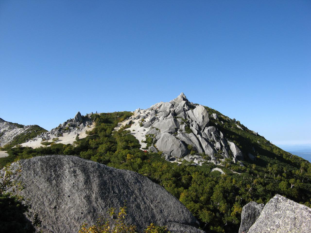 The first mountain, though, that I wanted to visit was Ho'o Sanzan, the Three "Phoenix" Peaks, Yakushi-ga-take, Kannon-ga-take, and Jizo-ga-take. I had seen pictures of Jizo-ga-take and was really impressed by the unique rock formations; when I found out how close it was to Kita-dake I knew I had to go that way.